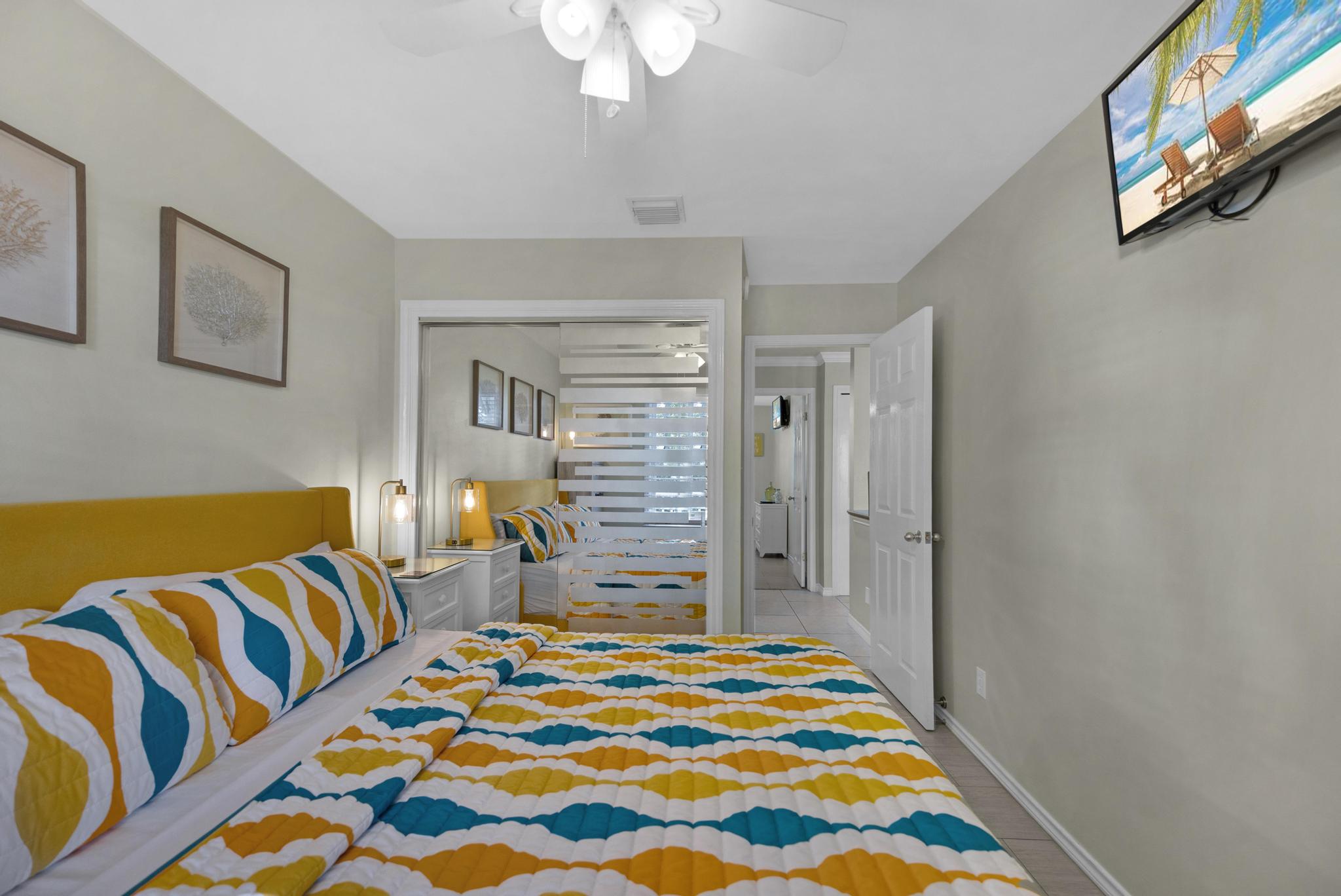 Easy check in, great place, and everything we needed for a 10 day stay. Appreciated an early check in, late check out, and the proactive contact from realty company. We were able to walk everywhere, enjoy relaxing by the pool, or even in the unit itself through different parts of the day or night. Beds were comfortable, furniture and decorations done tastefully, and a lot of seating options both in and outside. Bathroom was located in between both rooms and this is ideal for a family of 4.
