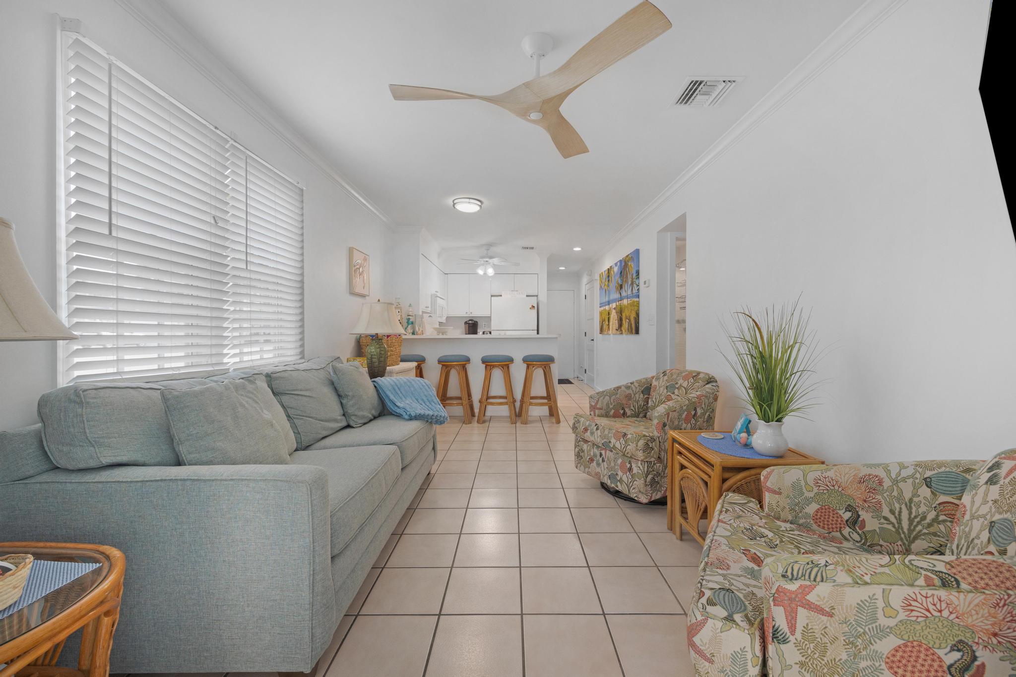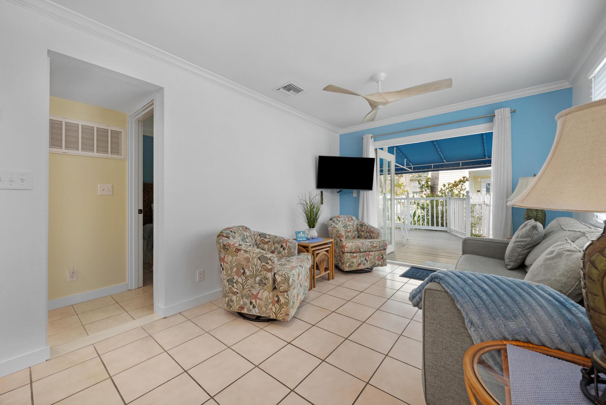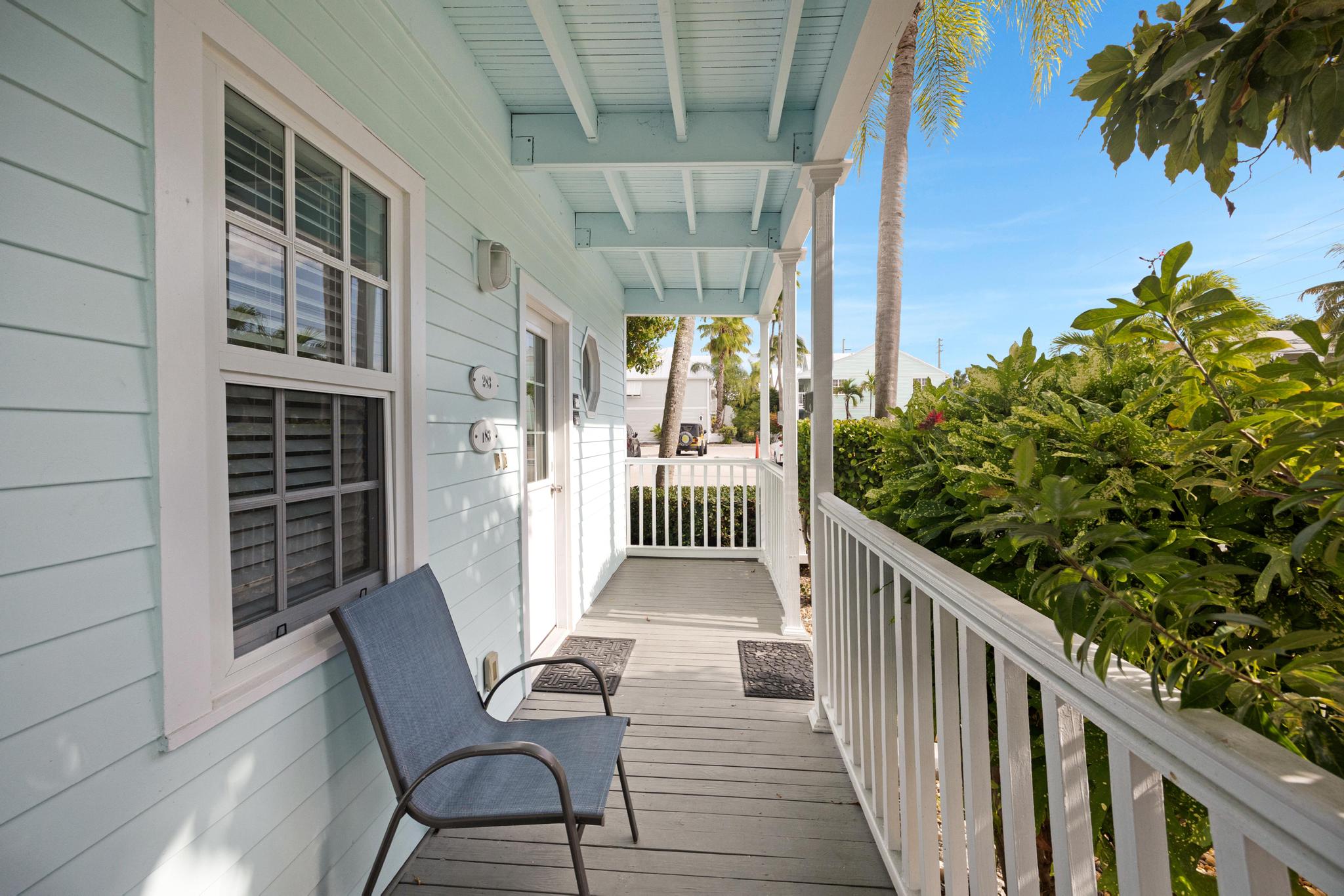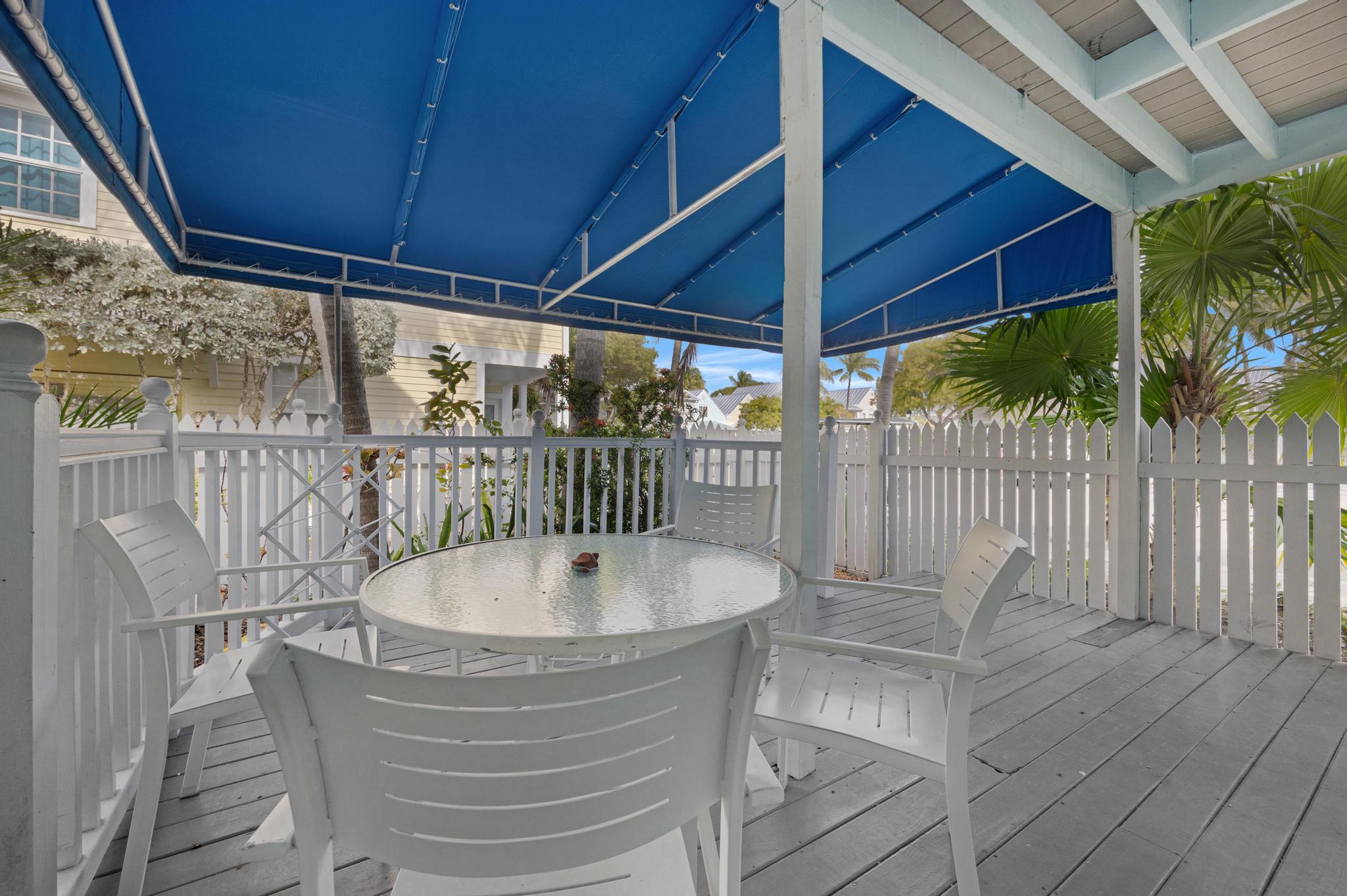 This unit was perfect to get everywhere easily. Love Truman Annex. Easy walks to Duvall or Fort Zachery Taylor beach. The back sitting area provided shade and room for everyone, and morning coffee sitting in the sun on the front porch was a great start to the day. Management was very helpful. Only wish was a grill for our fresh fish catch.