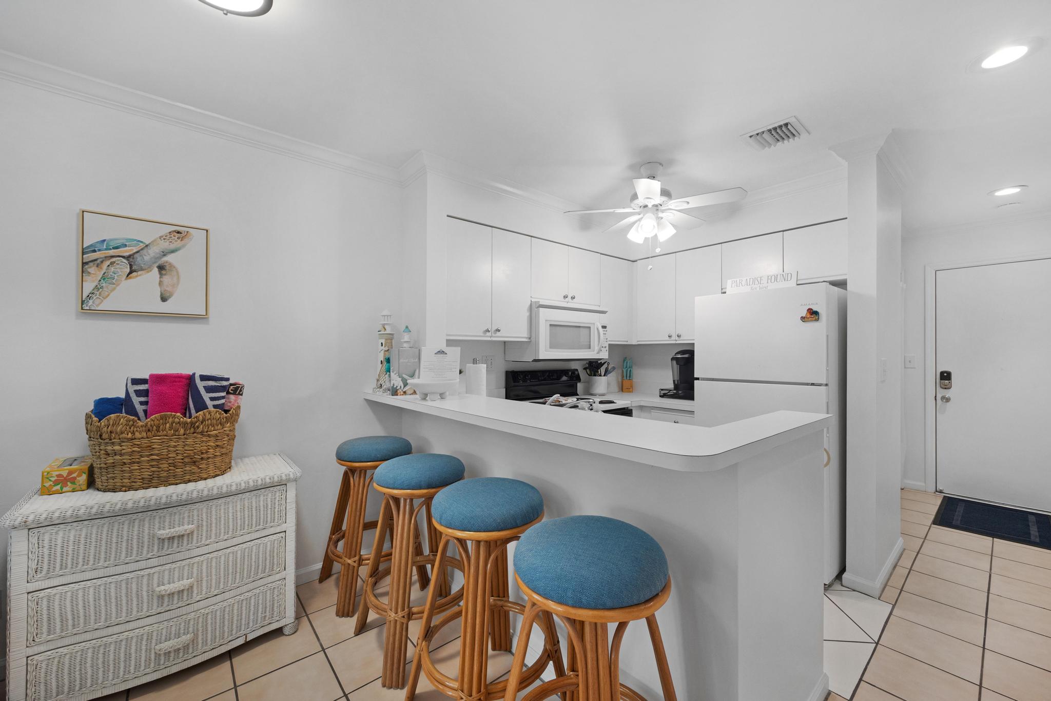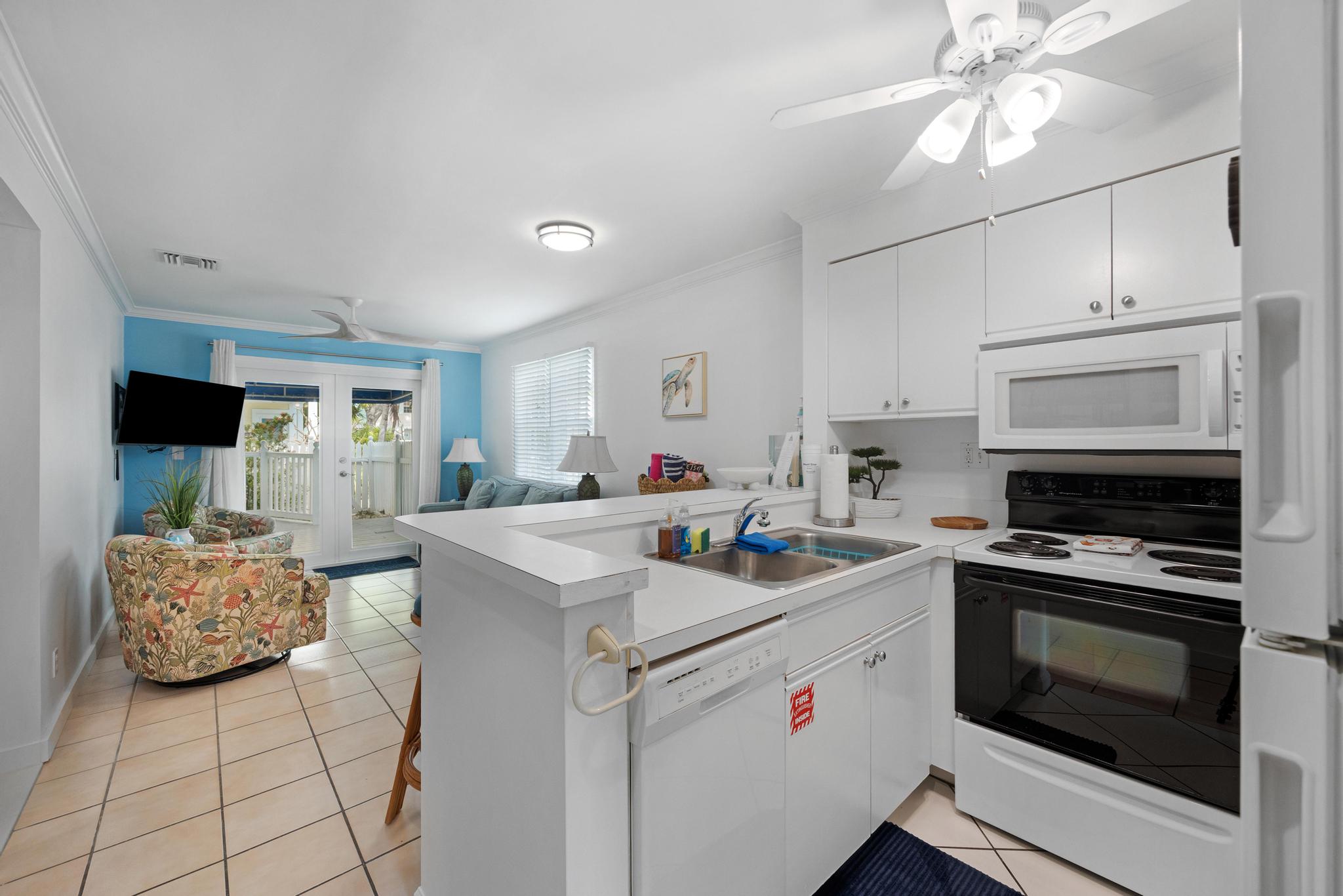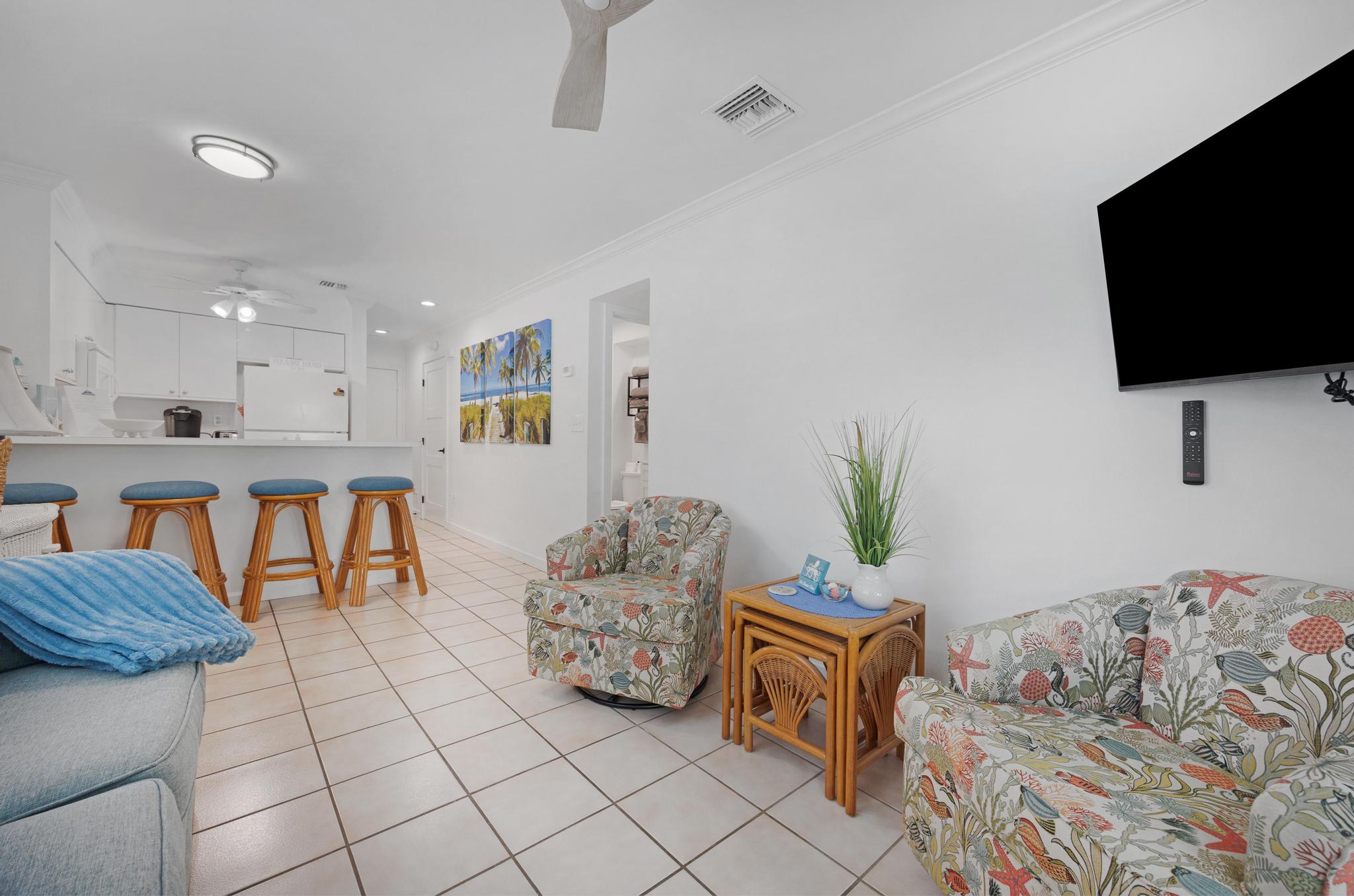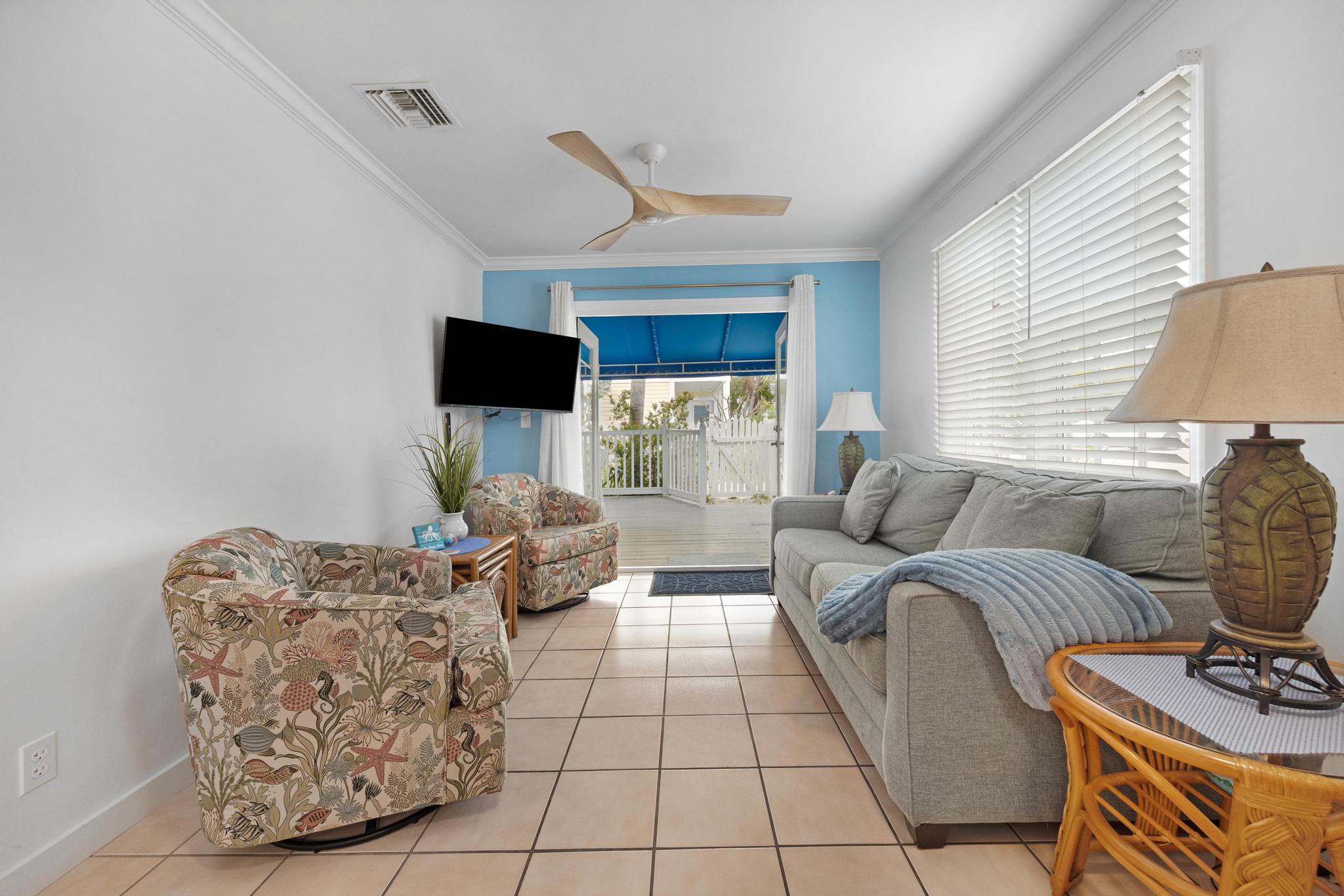 This unit was perfect to get everywhere easily. Love Truman Annex. Easy walks to Duvall or Fort Zachery Taylor beach. The back sitting area provided shade and room for everyone, and morning coffee sitting in the sun on the front porch was a great start to the day. Management was very helpful. Only wish was a grill for our fresh fish catch.