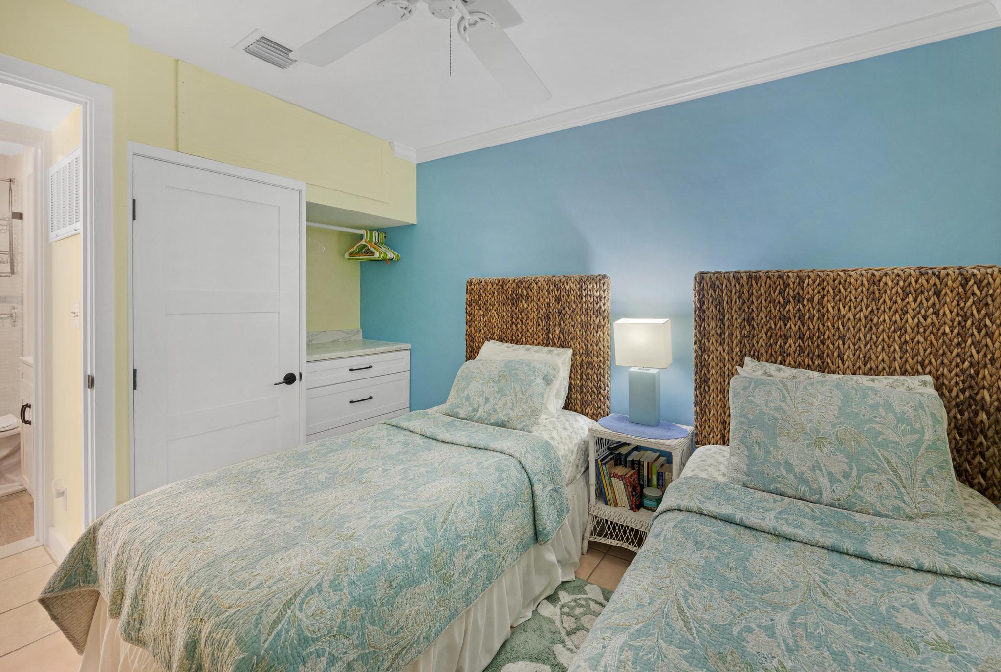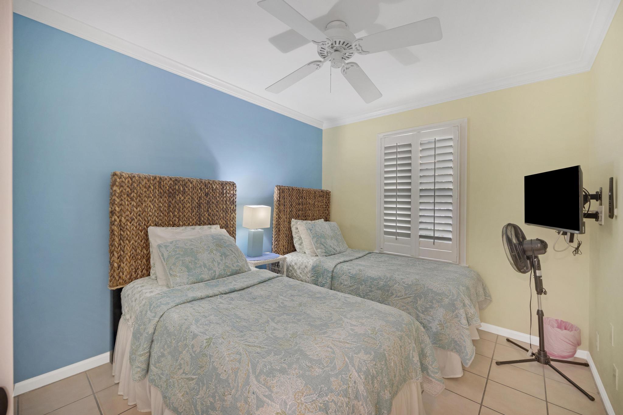 Angker’s Retreat in the Shipyard Condominium section of Key West’s Truman Annex neighborhood is an ideal base for exploring all the best the Conch Republic has to offer. Only a block to the community pool. Only a few blocks to Duval Street, Old Town, Mallory Square, and the harbor. The unit is comfortable and functional with a compact kitchen and a small bathroom, plus a queen size bed in one bedroom and two twins in the other.A nice front porch and a large, shaded back deck in a prime corner location. A few modernizing touches would make it even more enjoyable, but it’s already pretty special just the way it is.