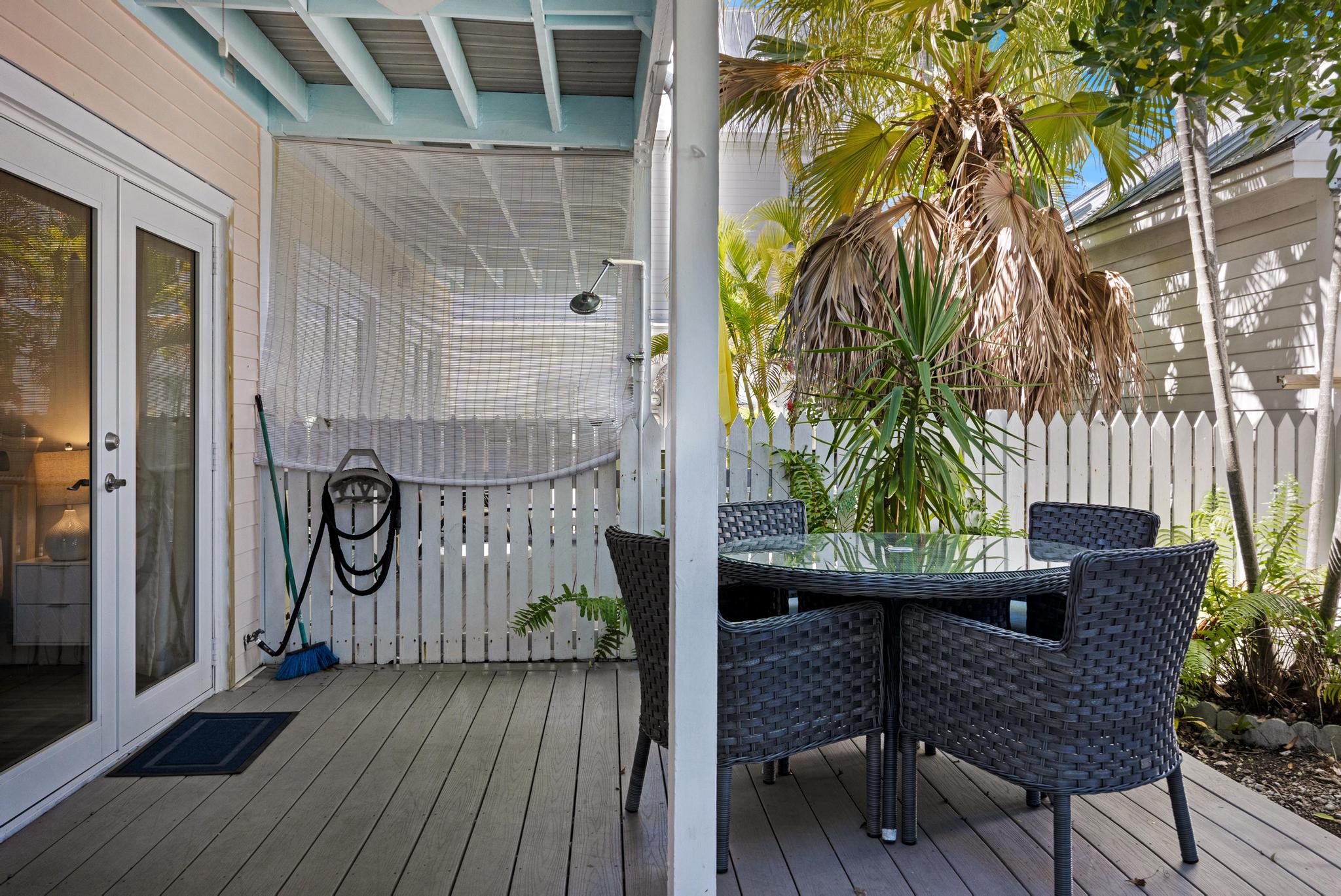 Our stay at Shady Nook @ Truman Annex was excellent. Shady Nook is an end unit, which gave us extra window space on the side, letting in lots of Florida sunshine. Like everything in Truman Annex, the location couldn't be better-very quiet but a quick walk to everything. We discovered Fausto's grocery store about three blocks away, so eating at home was easy. Of course, this didn't happen often because of all the great restaurants close by! The property managers at Compass Realty were very helpful and accommodating both before and during our trip. Truly an excellent experience, start to finish.