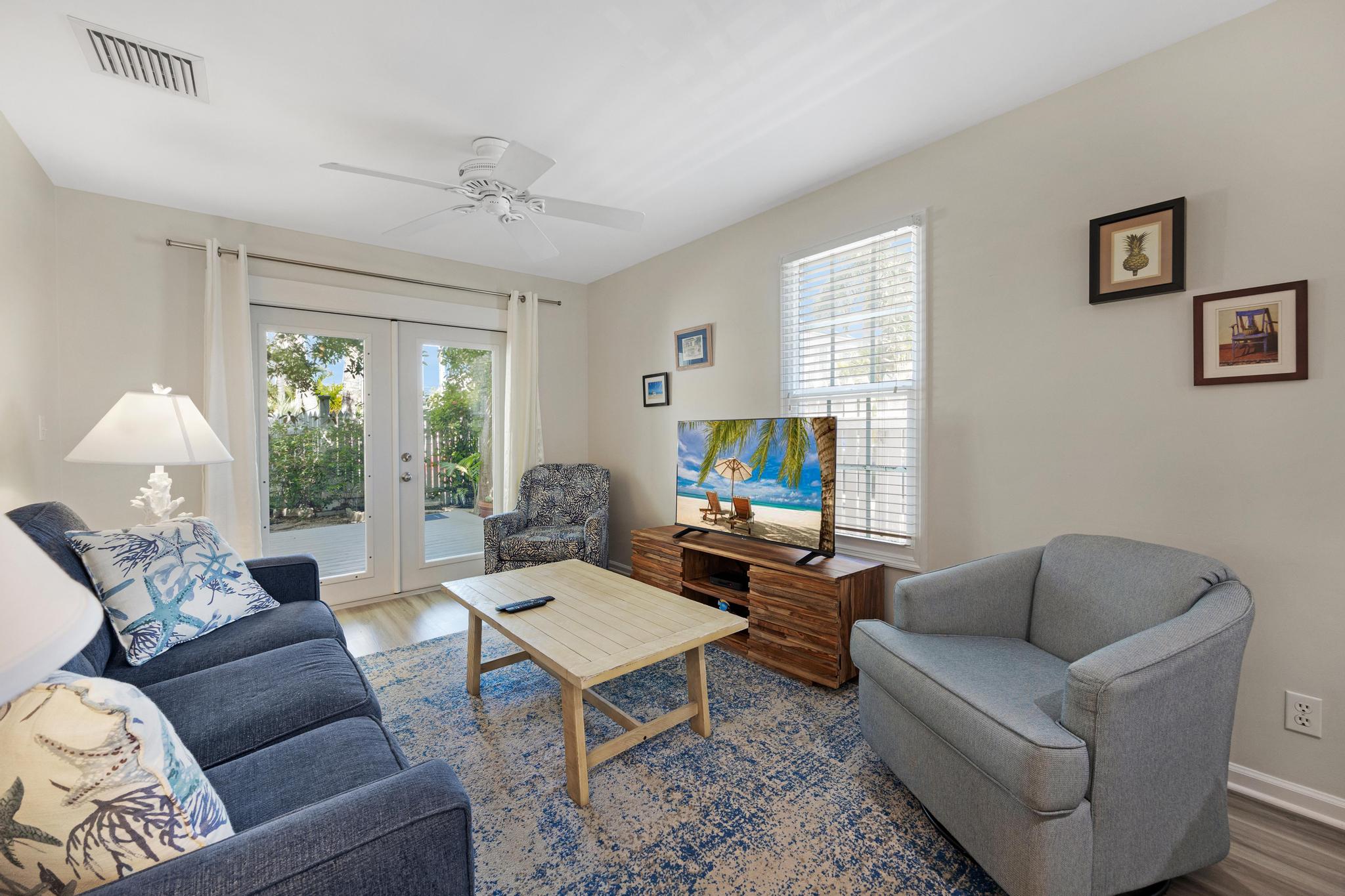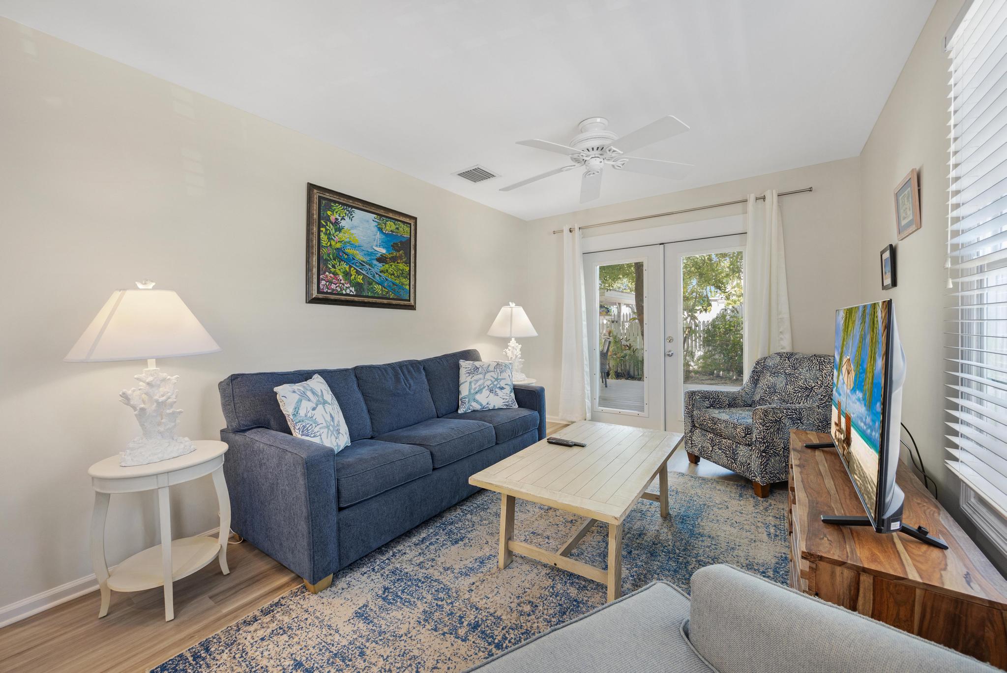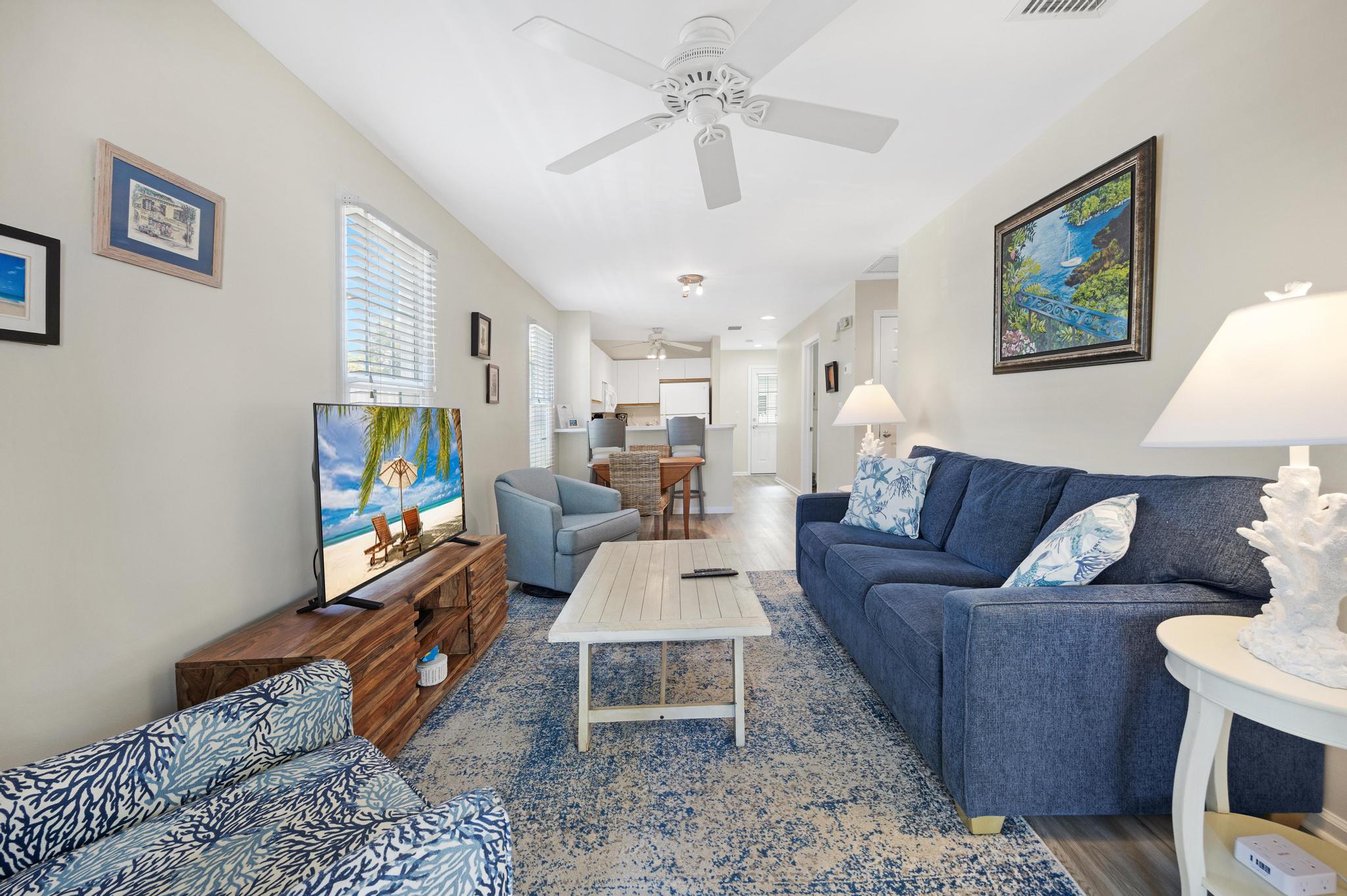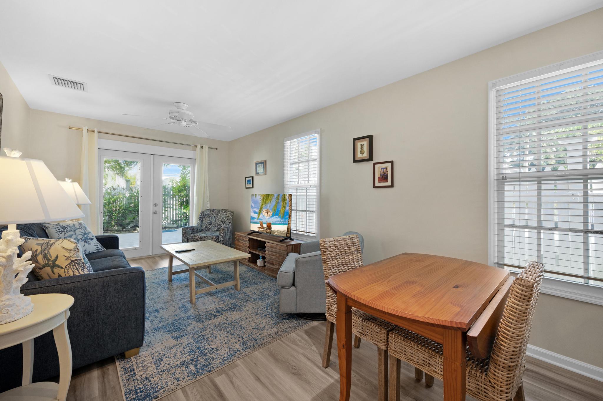 This rental first and foremost is in a great location. Accessible from Thomas St via the back patio gate was a great added perk. The kitchen had everything we needed. And the unit had some nice extras like laundry detergent and beach chairs. The beds were comfortable, the sleeper sofa adequate. The only thing I’d recommend would be mirrors for bedrooms. When you put 5 people in this unit, the bathroom gets busy and having mirrors and maybe even a vanity in the bedrooms would really be useful!