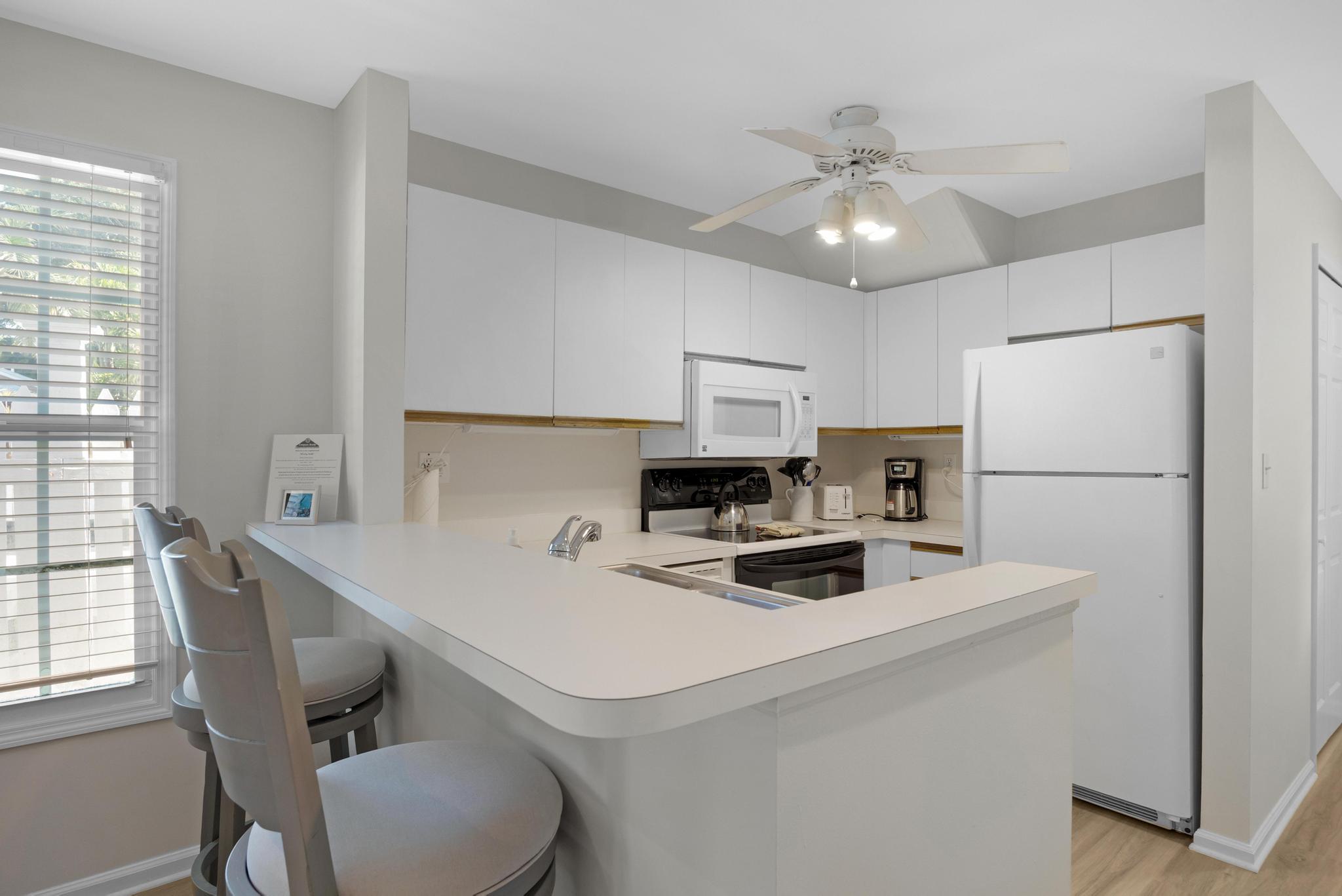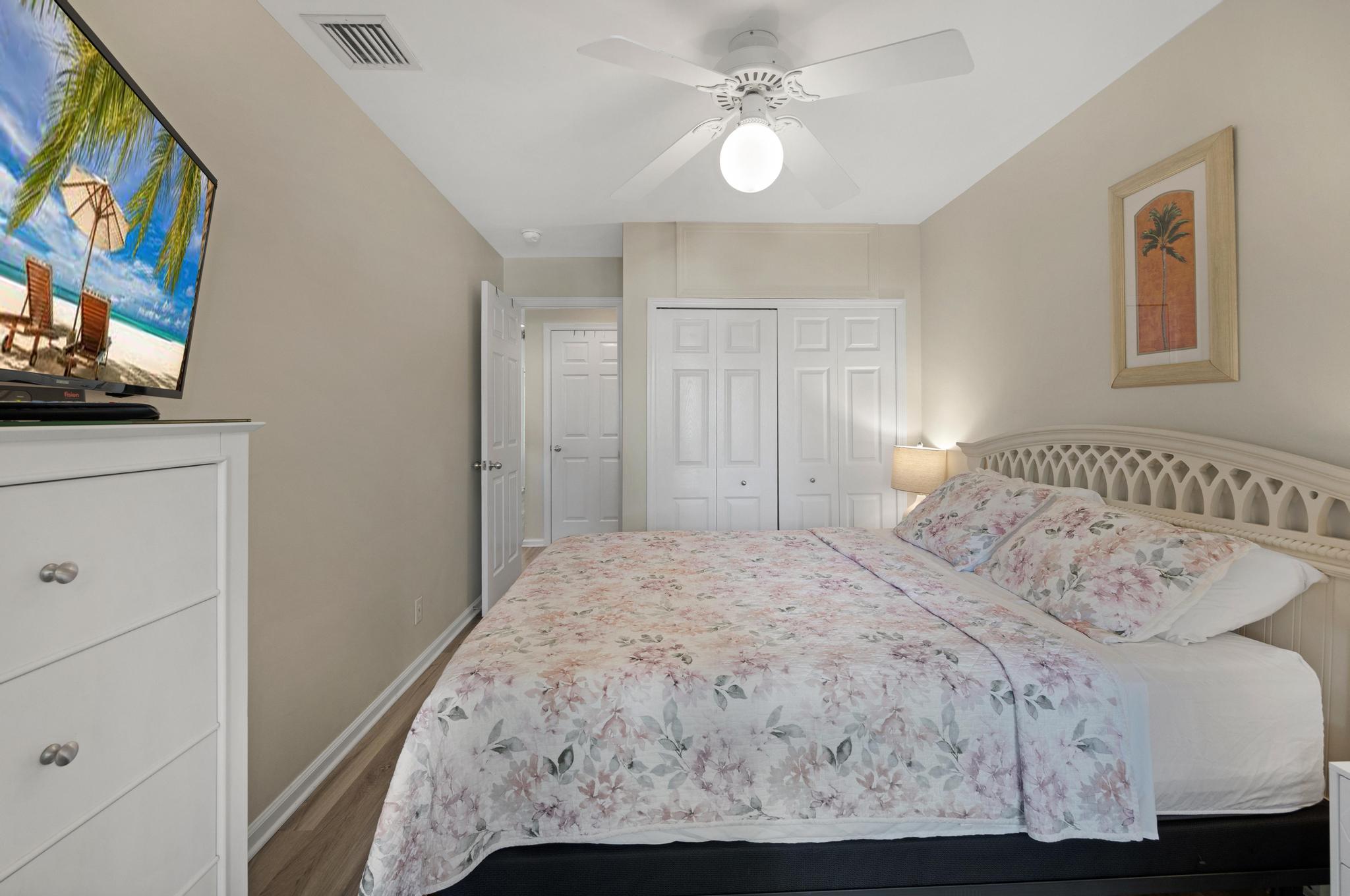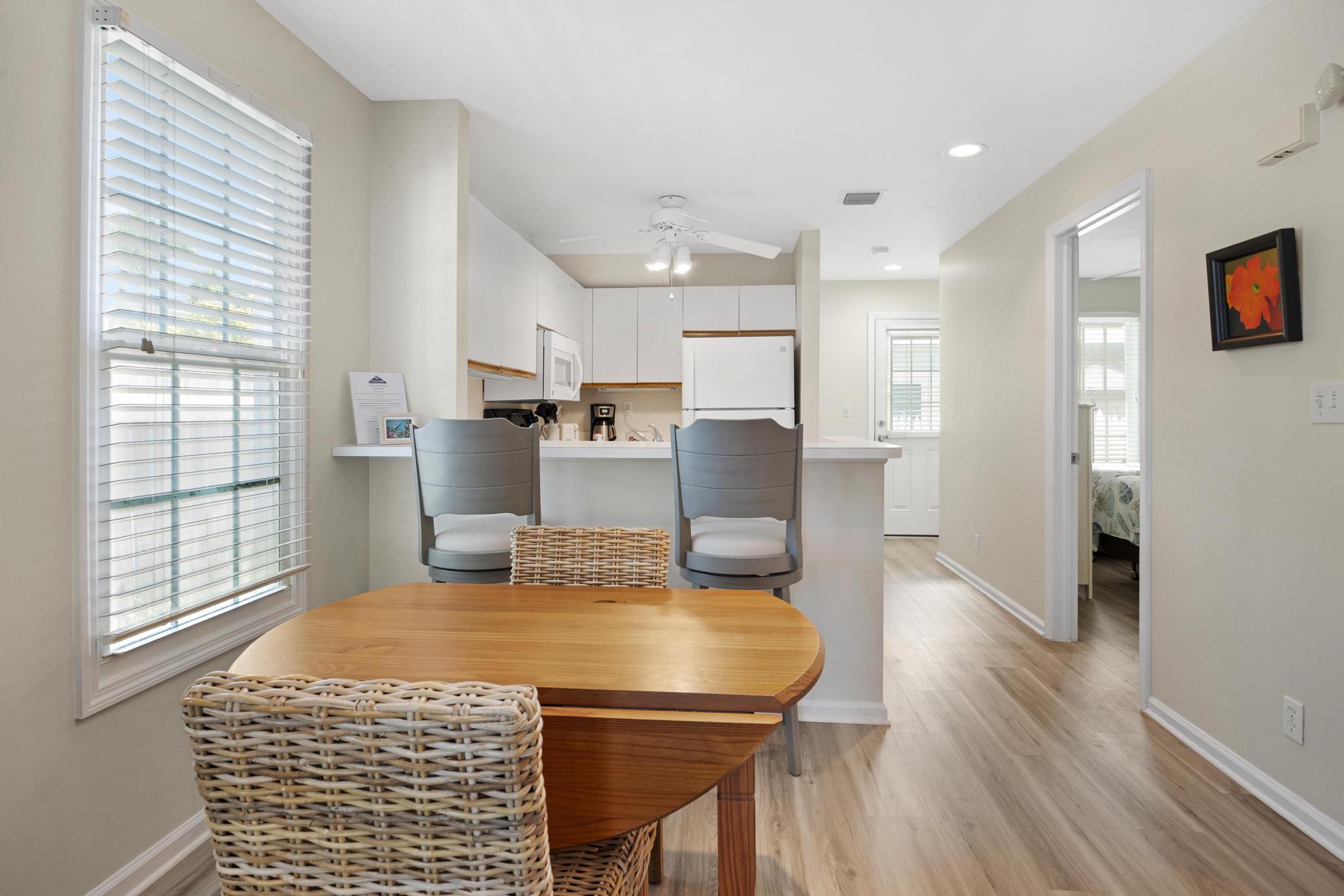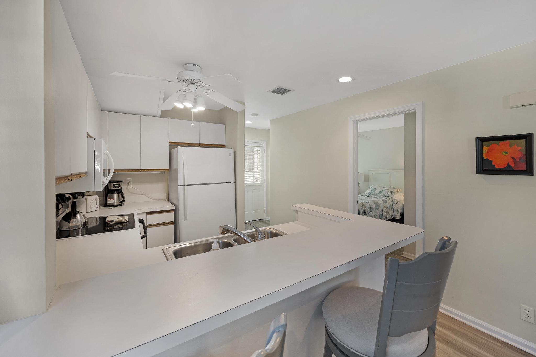 This rental first and foremost is in a great location. Accessible from Thomas St via the back patio gate was a great added perk. The kitchen had everything we needed. And the unit had some nice extras like laundry detergent and beach chairs. The beds were comfortable, the sleeper sofa adequate. The only thing I’d recommend would be mirrors for bedrooms. When you put 5 people in this unit, the bathroom gets busy and having mirrors and maybe even a vanity in the bedrooms would really be useful!