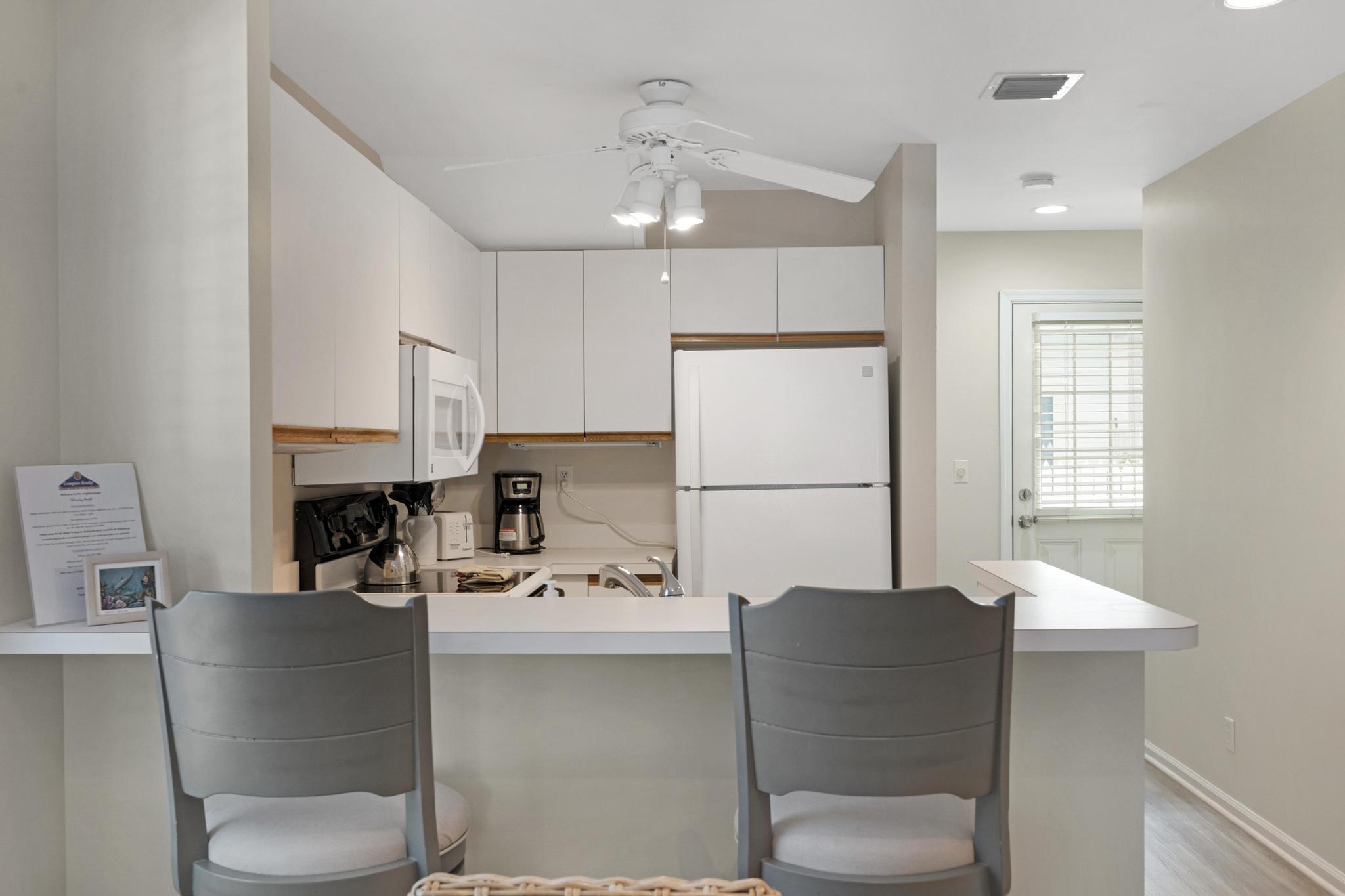 When we arrived at condo cleaning lady came back to take photo of a cabinet that neeeded fixing,we told her the toilet was not flushing right.We told her the place was very clean inside. She said she would report it, but it would most likely be Monday tell they come out. We went in on Monday and Megan had the handyman already on his way and the plumber. Compass realty was great. Who ever owns the condo really needs to do some up keep on the place. Doors are rotting away afraid to open bedroom patio doors for fear the glass would break. This was our 3rd stay at Shady Nook and last, but not with compass realty. Can't beat the location though.We had a great time.