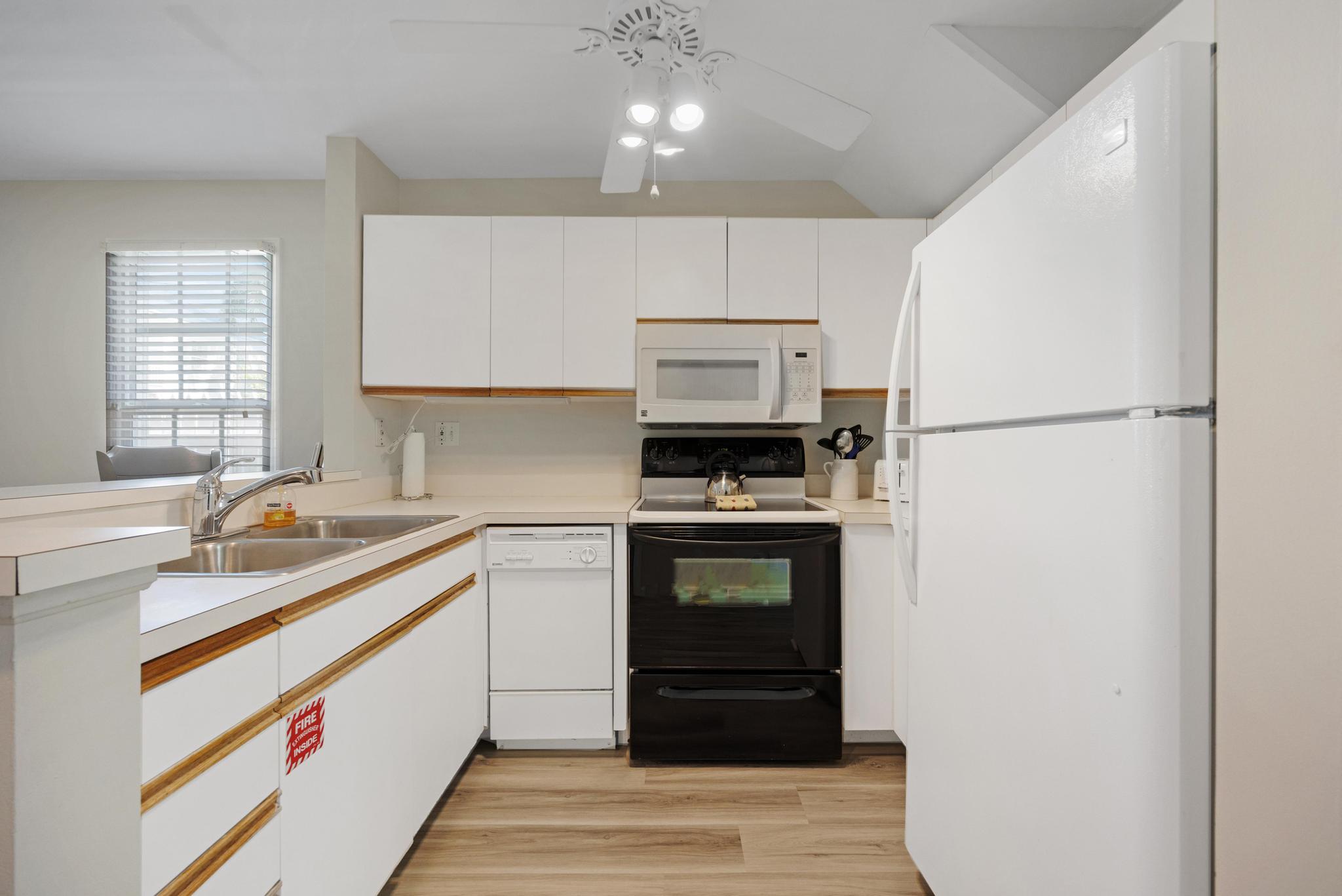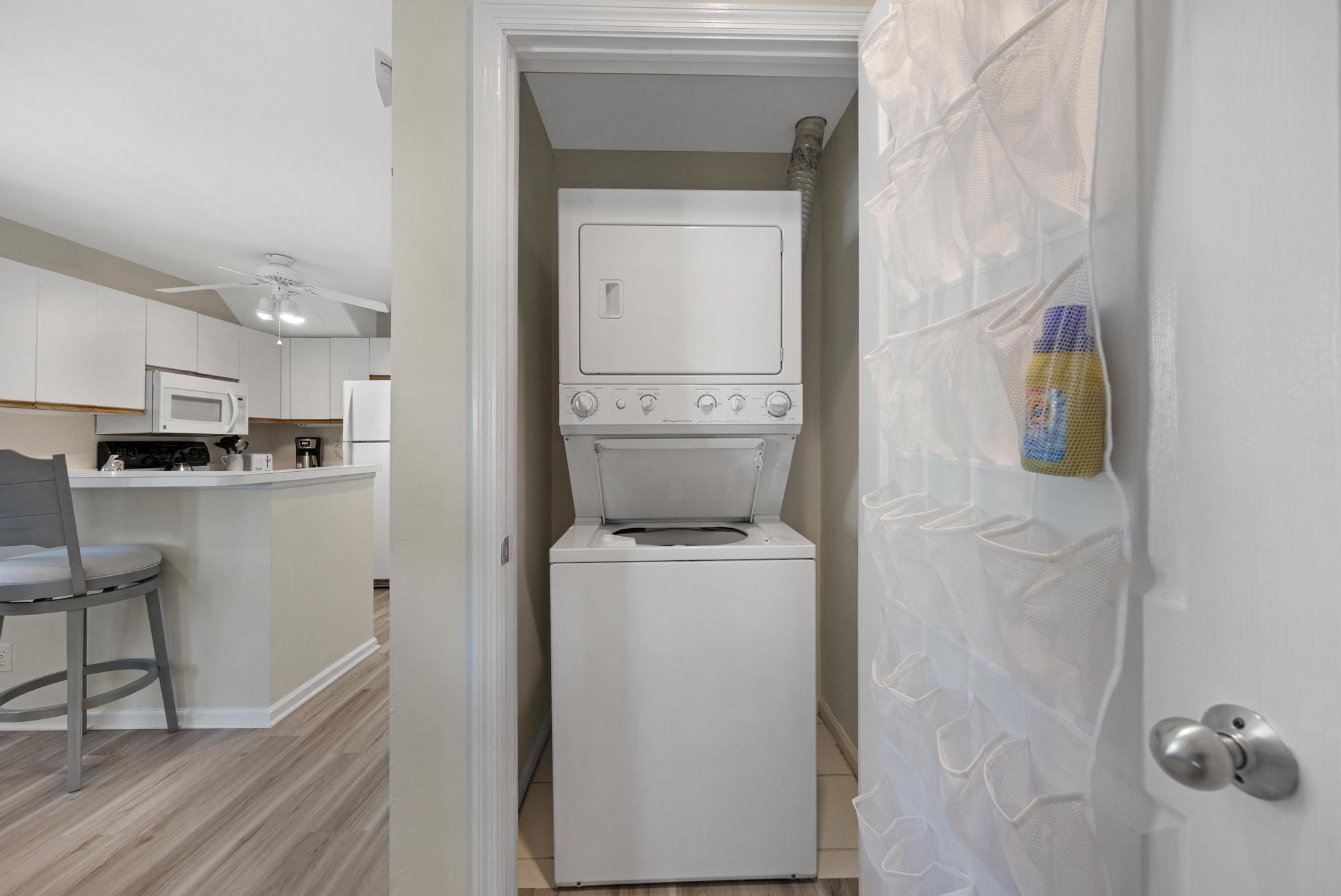 This unit was very nice and conveniently located. It is easily accessed through the back gate. When we arrived, it was already dark and it took us a while to both get into the fenced in area to get the keys then figure out which unit was ours (It's near the very front but tucked away a bit.). Loved that it had a washer/dryer and dishwasher. The shower door needs some help, it seems to be falling apart a bit, and water leaks out, but still functional. We had a late flight out and the management company graciously allowed us to stay a few more hours which I appreciated so much. Great place, highly recommend.