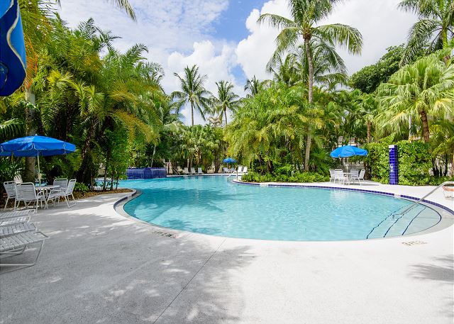 Welcome to Tailgate Key! This unique vacation property is located in the Key West Golf Club Community set amongst lush tropical landscaping with views of the beautiful greens and fairways of the Rees Jones designed 18-hole course. Wind down on your screened back porch and enjoy the gorgeous views of the lake and golf course. This gated community includes a fitness center and two beautiful heated pools in an Old Town Key West setting. Tailgate Key is a spacious 1,320 square foot furnished property. There is close access to the home from the entrance to the community. One of the larger homes in the golf course, it is conveniently located near the fitness center and pool. The two spacious upstairs bedrooms each have a private bath with flat screen TV’s with queen beds and ample closets. The primary suite has a bathroom with walk in shower. The upstairs guest bedroom also offers a queen bed. The downstairs has two pullout sleeper sofas- one is the living room and second one in the bonus room off the kitchen which can be fully closed for privacy. There is a third full-size bathroom downstairs with a washer and dryer and shower stall. An open kitchen boasting new stainless steel appliances, Corian counters, and a convenient breakfast/cocktail bar are part of the updated interior of this home. Enjoy the beautiful professionally landscaped brick-paved backyard overlooking the second hole. It is also walking distance to the public golf clubhouse and VFW restaurant and bar as well as very close to numerous restaurants and water activities.